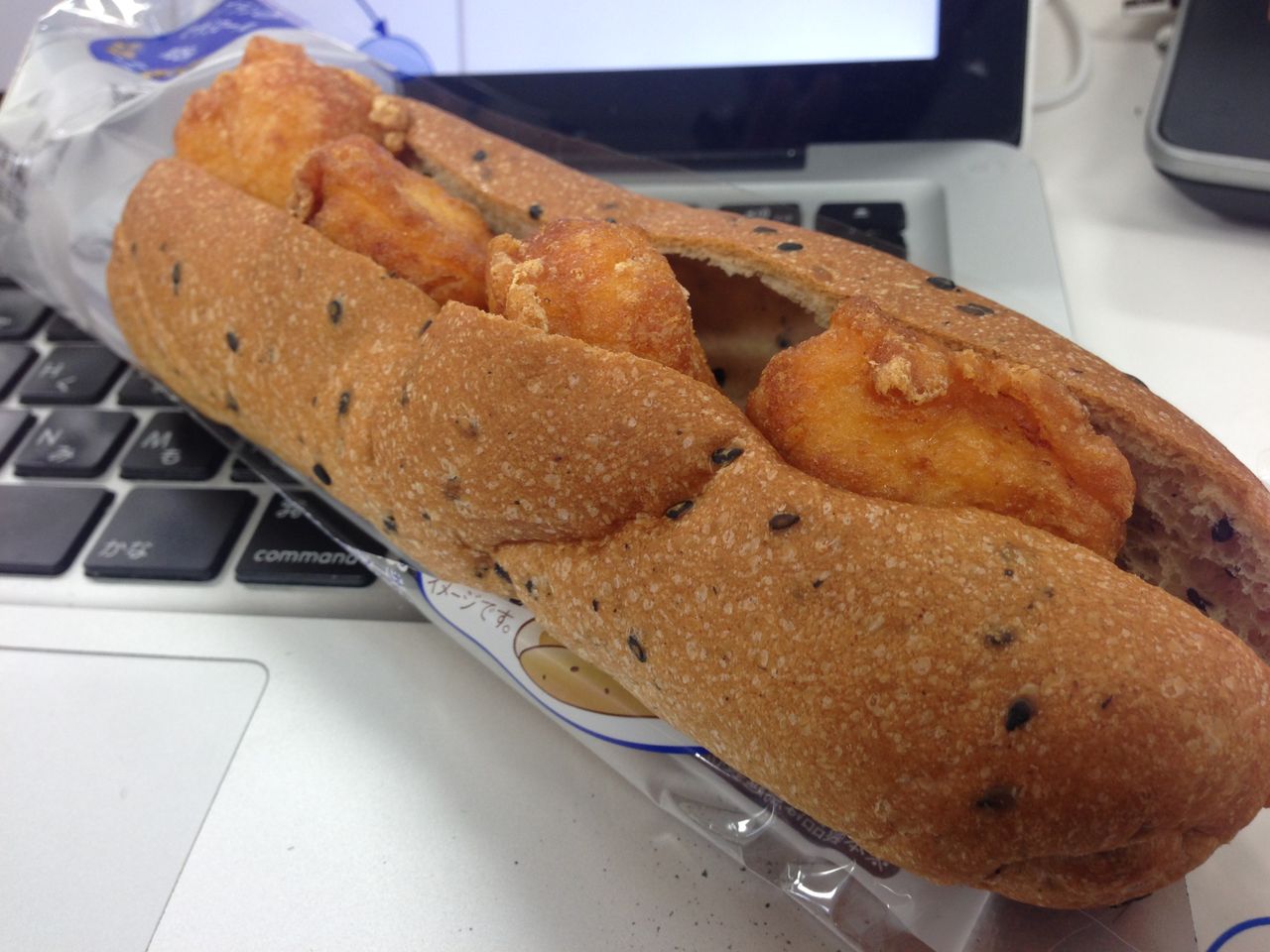 ところでこれはローソンのブランパンに、同じくローソンのからあげクンを挟んだやつ。低糖質、そして高タンパク!