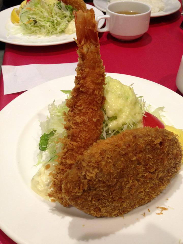 1500円くらいするわりと高級な洋食屋さん。でもエビフライとかすごく大きくて、満足度は高いので良し。ちょっと高いので四半期に1回くらいしか行かなかったけど、でもたまにどうしても行きたくなって、11時半くらいから並んでた。エビフライってこんなにでかくてうまいんだって知った店。死ぬ前に行きたい。