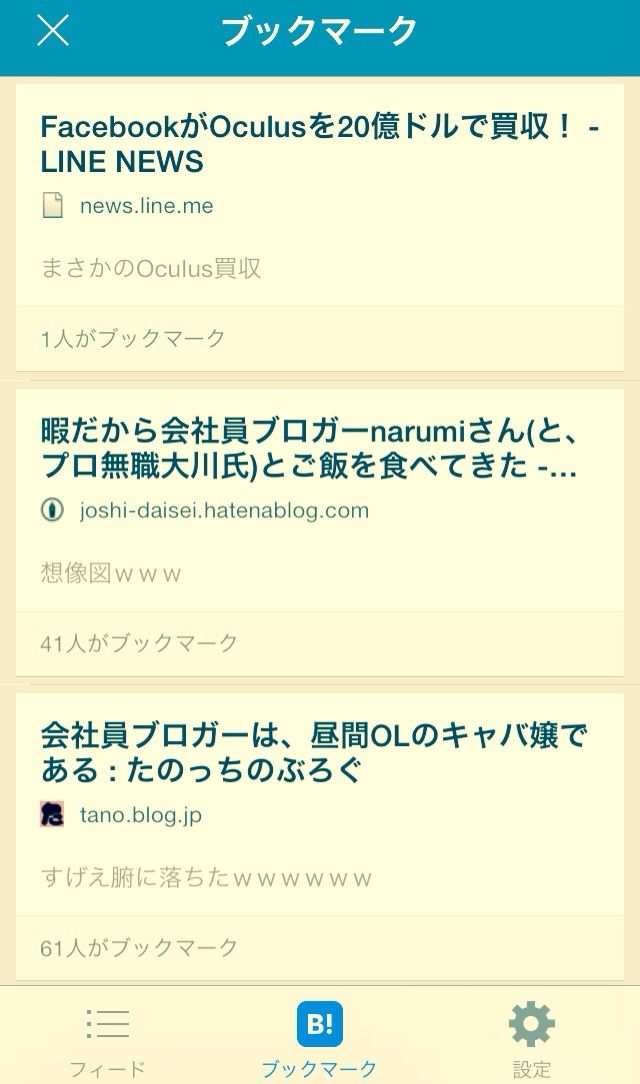 自分の登録したブックマークを見ることもできるので、このニュースアプリを本家のはてブアプリの代わりに使うというのもよさそう。動きはこっちの方がだいぶモダンな感じです。わりとフローな情報を追いかけたい人は「Presso」、ストック的なのが好きなのは「はてブ」のアプリという感じでしょうか。