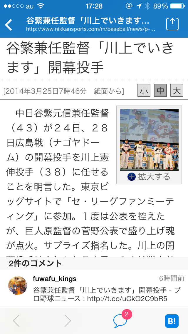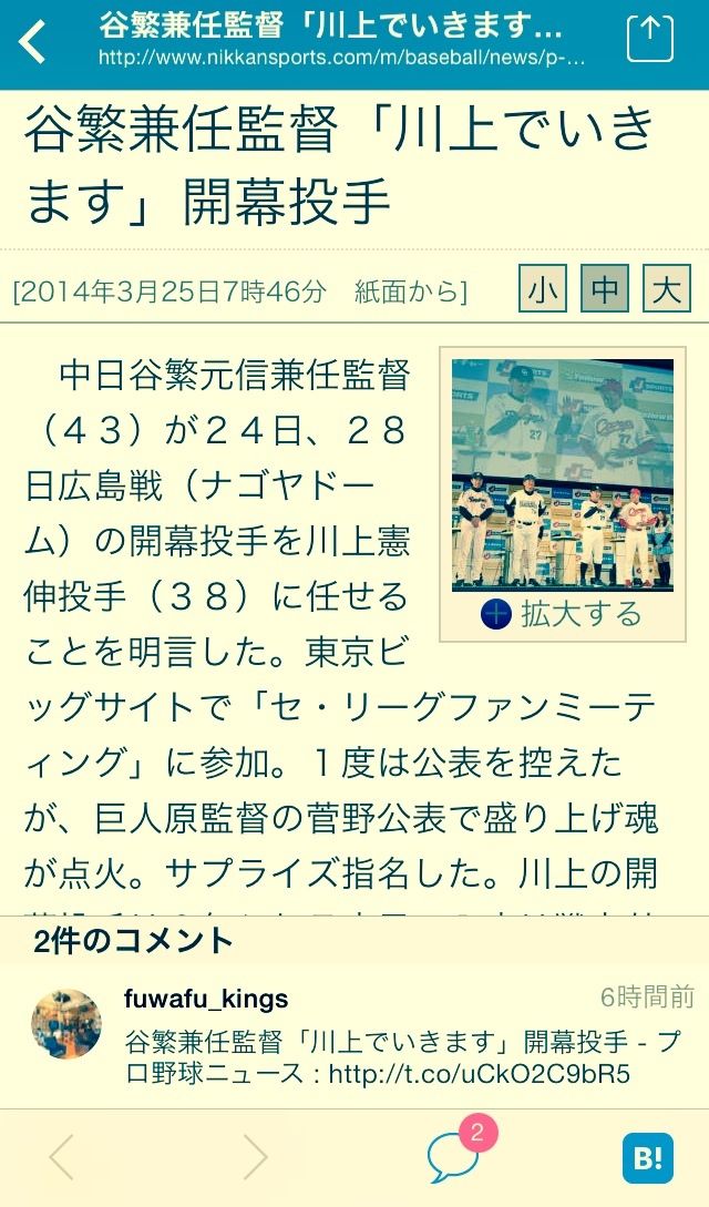 記事を開くと、はてブのコメントが確認できます。もちろん「B」を押せば自分のブックマークに登録可能です。
