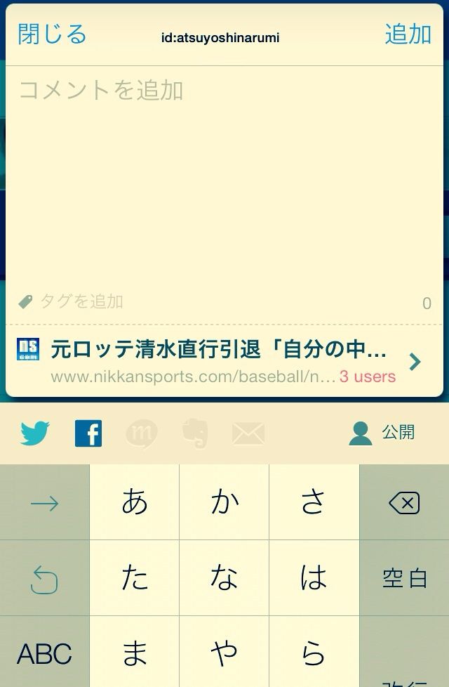 はてブへの登録画面はこんな感じ。外部ソーシャルメディアとも連携しており、かなり使い勝手は良さそうです。