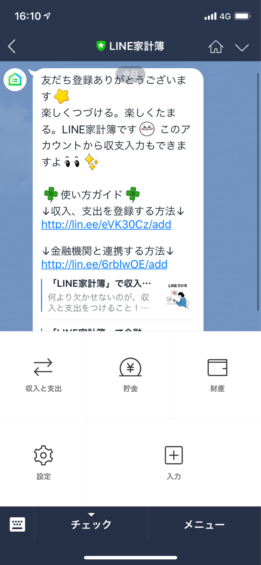 言われるがままにLINE家計簿アプリもインストールした。