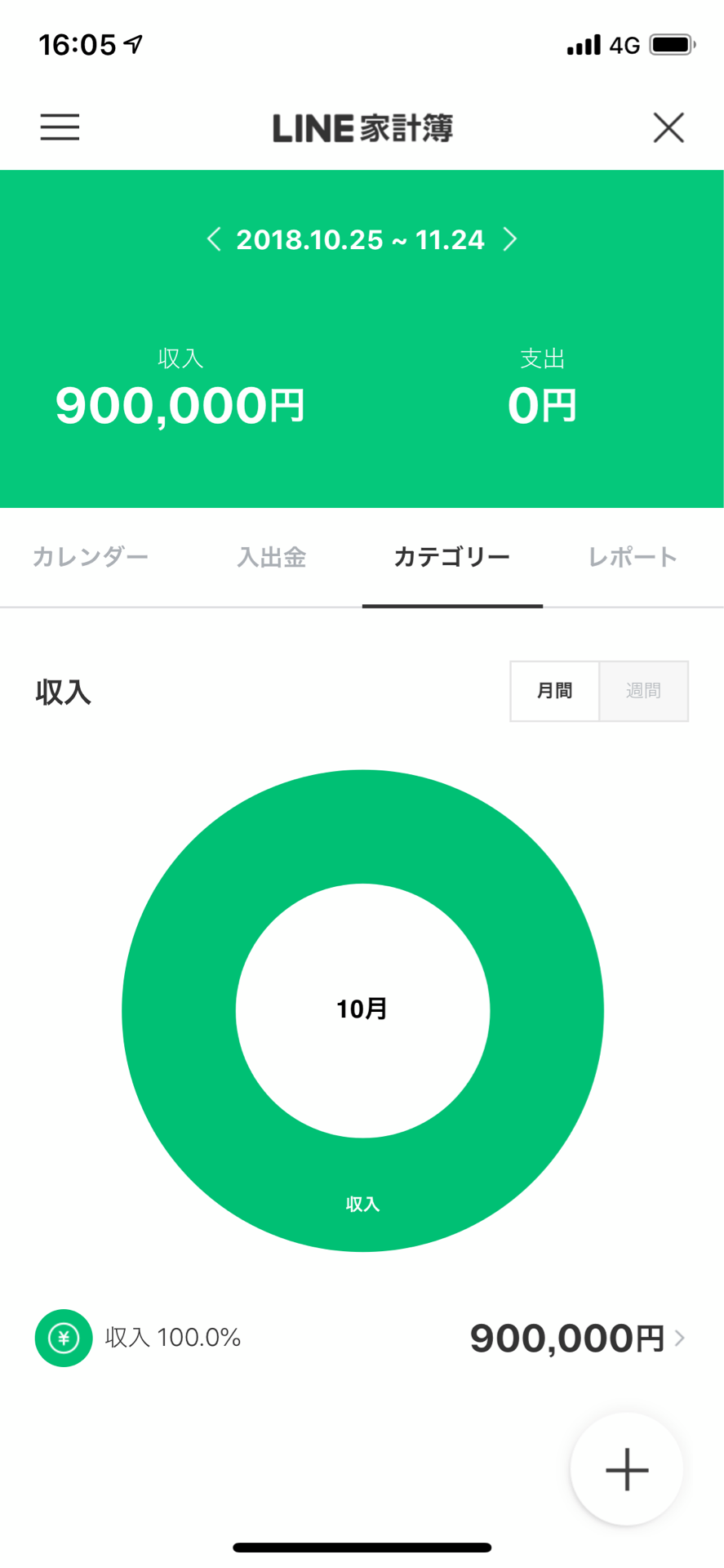 カテゴリーというタブを開いたけど、まだ何も記録してないので、特にグラフに変化はない模様。