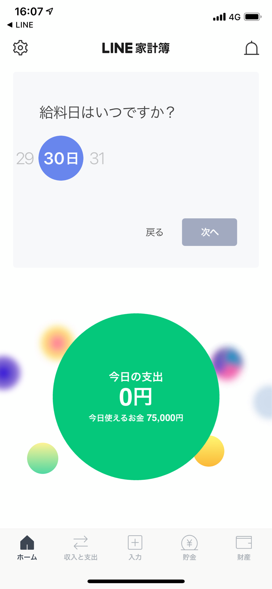 次は何をやるんだろう考えてたら、こんなチュートリアルが出てきました。給料日と手取り金額を入力しろと言われるので入れていきます。