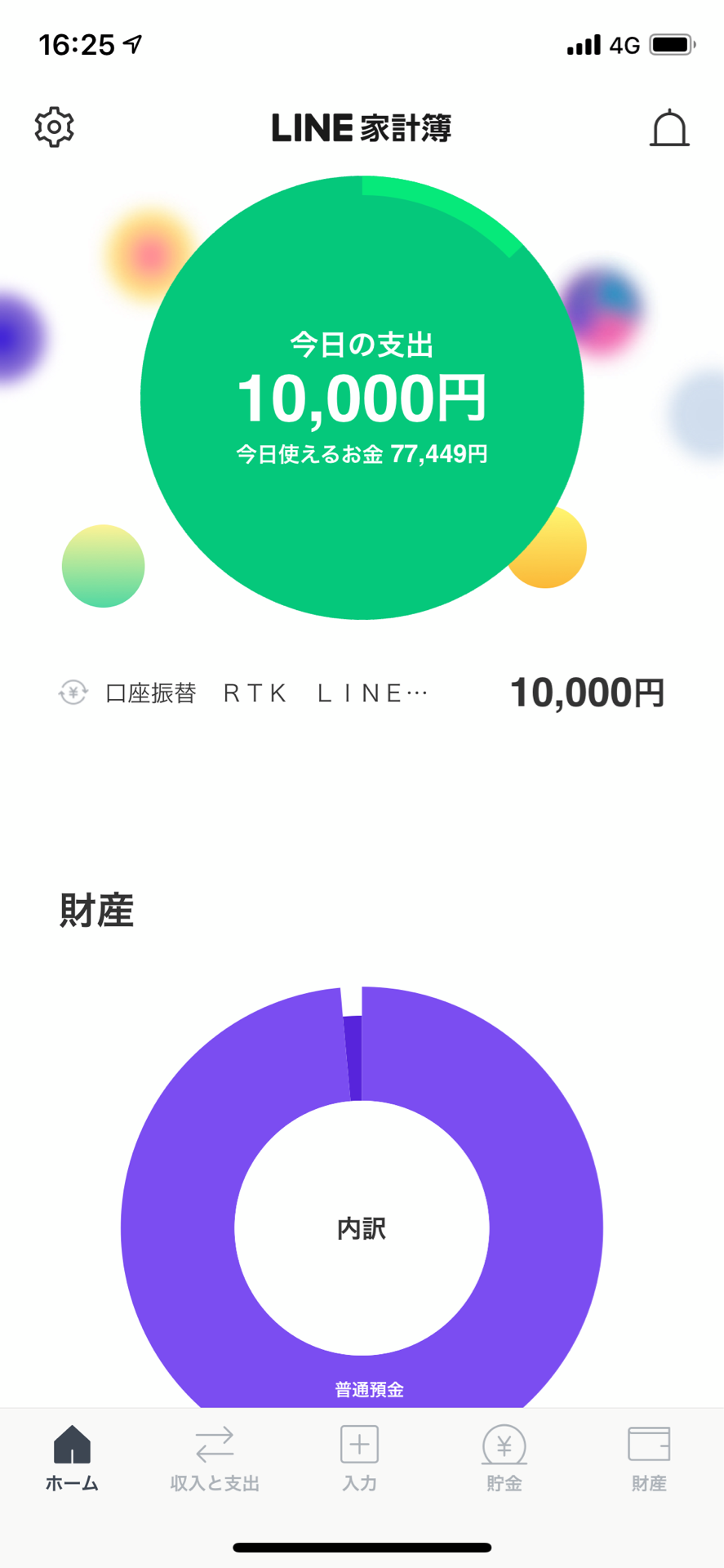 試しに銀行口座からLINE Payに1万円チャージしたら、支出が1万円になった。