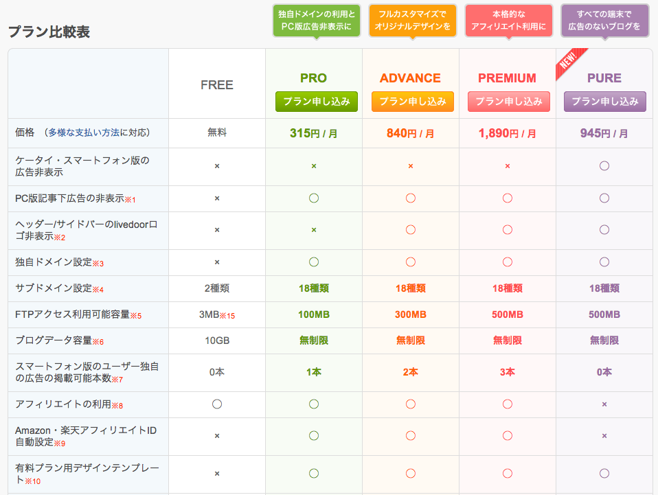 いきなり有料プランに申し込むとモチベーションあがります。だって続けないともったいないですから。後に引けなくなるのです。有料プランに申し込む利点としては、ブログ内にデフォルトで入る広告を非表示にできること、そして自分の設定した広告を入れられること、livedoorロゴを非表示にできることなどです。