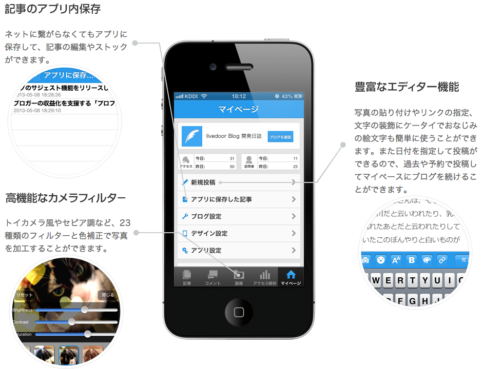 livedoor Blogはスマホ向けに「ブログ投稿アプリ」というものを無料公開していて、これを使ってブログを更新するとかなり楽です。とてもよくできているアプリです。