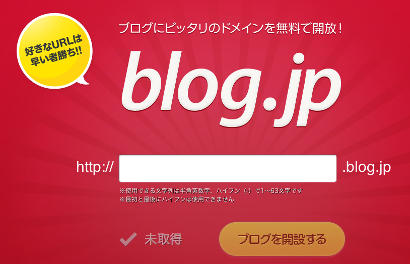 自分でサーバを借りて、ドメイン取って、ブログのソフトウェアをインストールするという方法もありますが、超面倒くさいですよね。それが、blog.jpで好きなドメイン取ってしまえば、サーバやら何やら考えなくてもすぐに始められます。ドメインがブログっぽいのがいいですね。